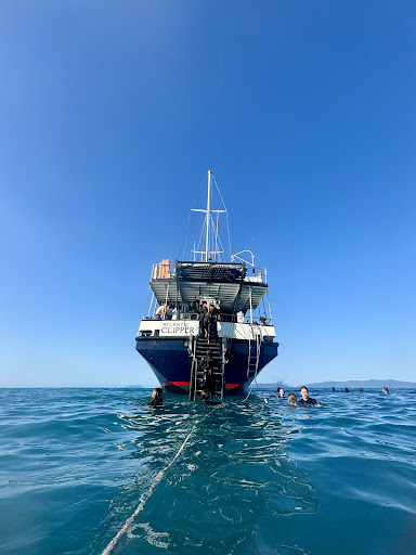 Now you’ve seen it, it’s time to feel it! Let’s head down and splash about in those blue and white swirls. Explore, sunbake, swim, and play beach games as you soak up those Aussie rays. It’s time to head back to the boat and upon your return is a beautifully prepared buffet lunch. Whilst you eat, we will sail to one of the best snorkel and scuba diving destinations. Atlantic Clipper has a dive instructor who can take those who purchase a scuba diving experience out to explore the vibrant marine life. Whether it be snorkelling or scuba diving this underwater world lights up before your eyes as you explore one of the worlds seven wonders of the natural world.