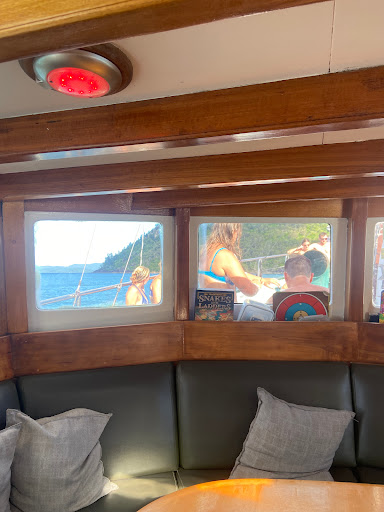 Ahhh it’s morning, the sun is shining, the birds are chirping and the crew are singing… LOUDLY to wake you up so have some breakfast and fill your bellies. There is no better way to fix a hangover than to slide down the water slide and dip into the ocean! Ahhh refreshing. Enjoy all the water activities or just lap up the sun on the decks before we sail back to the mainland.