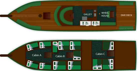 - 3 sectioned cabins (shared) with air conditioning
