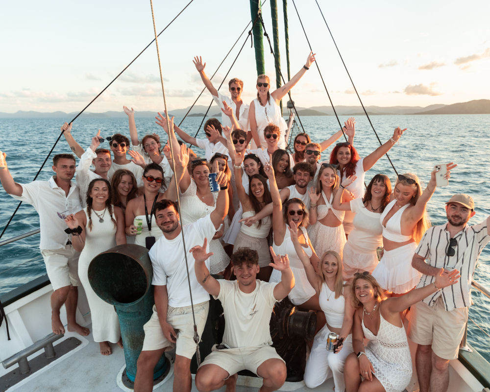 Ahhh it’s morning, the sun is shining, the birds are chirping and the crew are singing… LOUDLY to wake you up so have some breakfast and fill your bellies. There is no better way to fix a hangover than to slide down the water slide and dip into the ocean! Ahhh refreshing. Enjoy all the water activities or just lap up the sun on the decks before we sail back to the mainland.