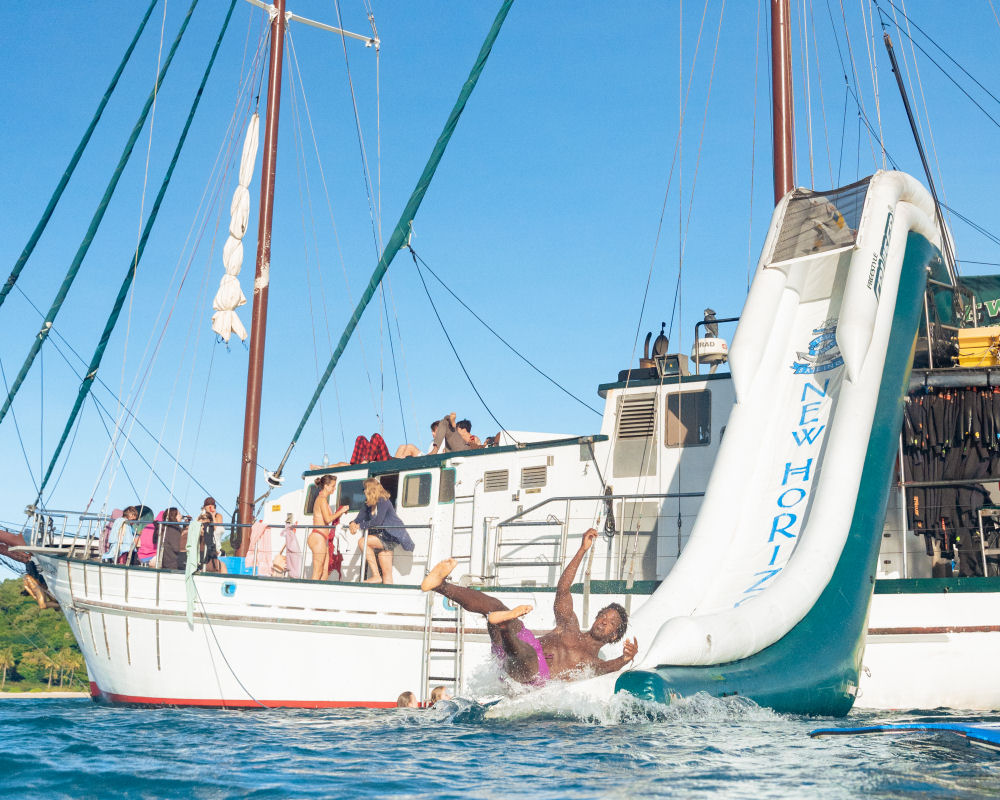 New Horizon is well known for being a fun, adventurous trip that is perfect for those traveling alone, in a group, as a couple and those who are young at heart. You’ll have more wonders to enjoy as we spend days cruising through the islands, enjoying freshly prepared meals on board, with endless opportunities to snorkel, swim, slide and soak up those tropical rays.
